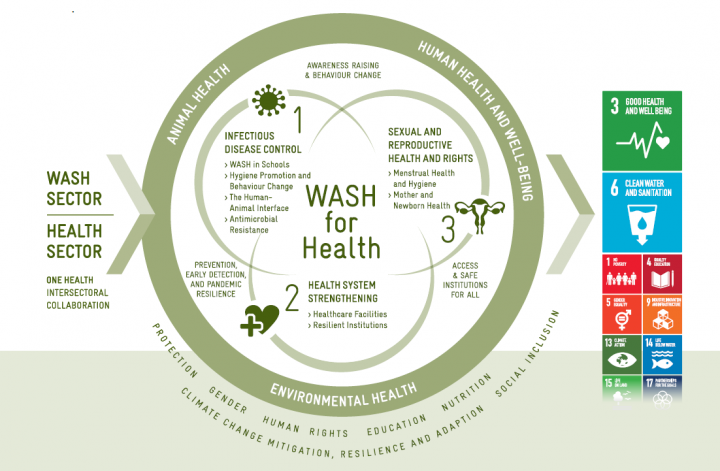 The WASH for Health approach presents significant opportunities for advancing not only SDG 3 (Good Health and Wellbeing) and SDG 6 (Clean Water and Sanitation) through improving public health outcomes, including WASH in infectious disease control, health system strengthening, and sexual and reproductive health and rights. Adopting the One Health approach provides a broader perspective, facilitating the integration of key action fields shared by the […]