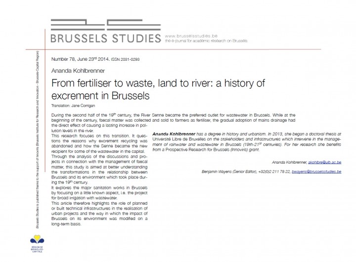 During the second half of the 19th century, the River Senne became the preferred outlet for wastewater in Brussels. While at the beginning of the century, faecal matter was collected and sold to farmers as fertiliser, the gradual adoption of mains drainage had the direct effect of causing a lasting increase in pollution levels in the river. This research focuses on this transition. It questions the […]