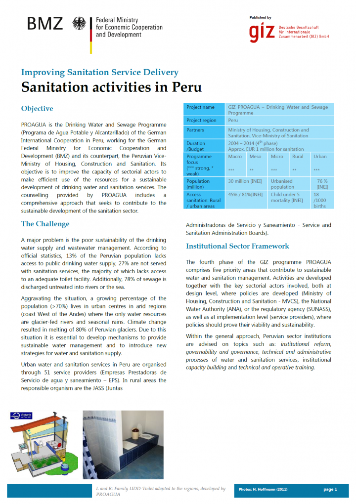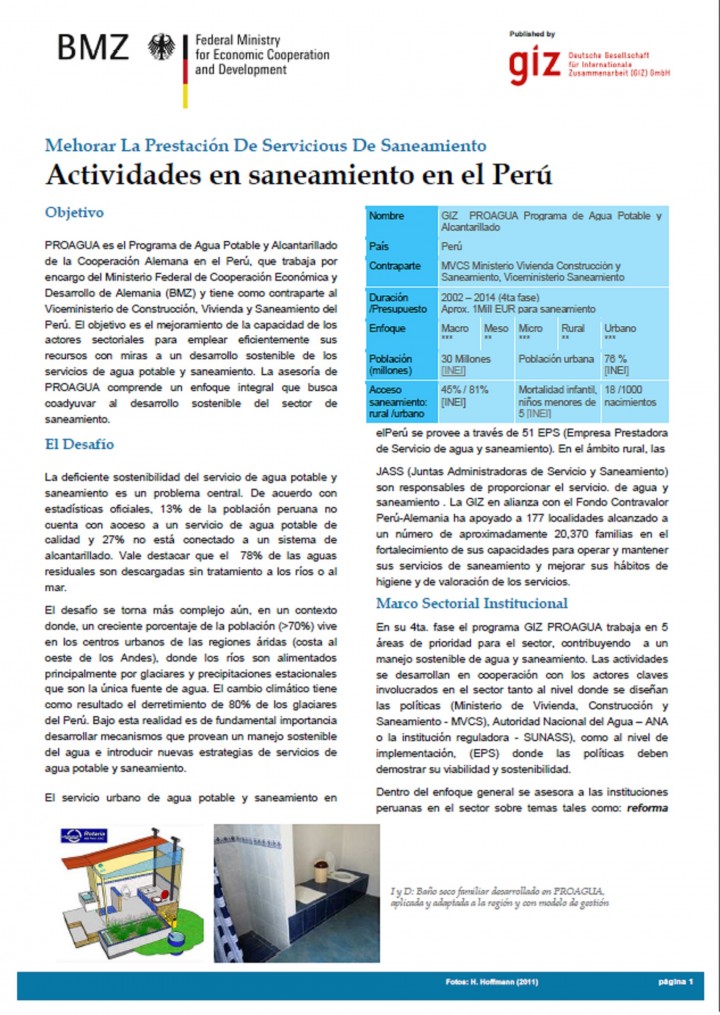 PROAGUA es el Programa de Agua Potable y Alcantarillado de la Cooperación Alemana en el Perú, que trabaja por encargo del Ministerio Federal de Cooperación Económica y Desarrollo de Alemania (BMZ) y tiene como contraparte al Viceministerio de Construcción, Vivienda y Saneamiento del Perú. El objetivo es el mejoramiento de la capacidad de los actores sectoriales para emplear eficientemente sus recursos con miras a un […]