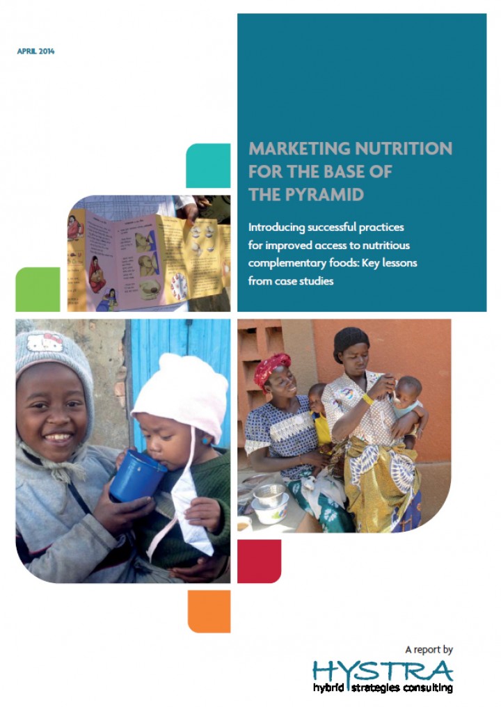 A range of solutions has been developed to improve the quality of nutrition during the critical first 1,000 days of life. Little is known however about the potential contribution of market-based solutions. This report learns from the successes and failures of best practice organizations that successfully sell nutritious complementary foods and supplements for 6-24 month old infants to BoP families in developing countries.