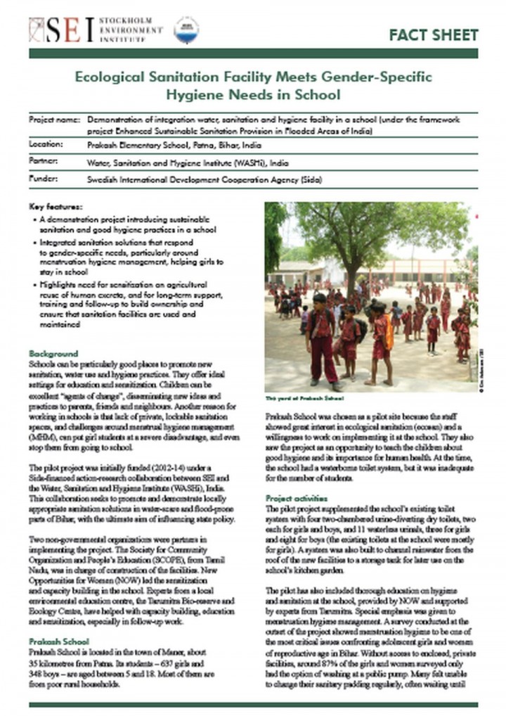This fact sheet describes an attempt to promote health, hygiene and girls' access to education by installing a sustainable sanitation facility in a school outside Patna, northern India.