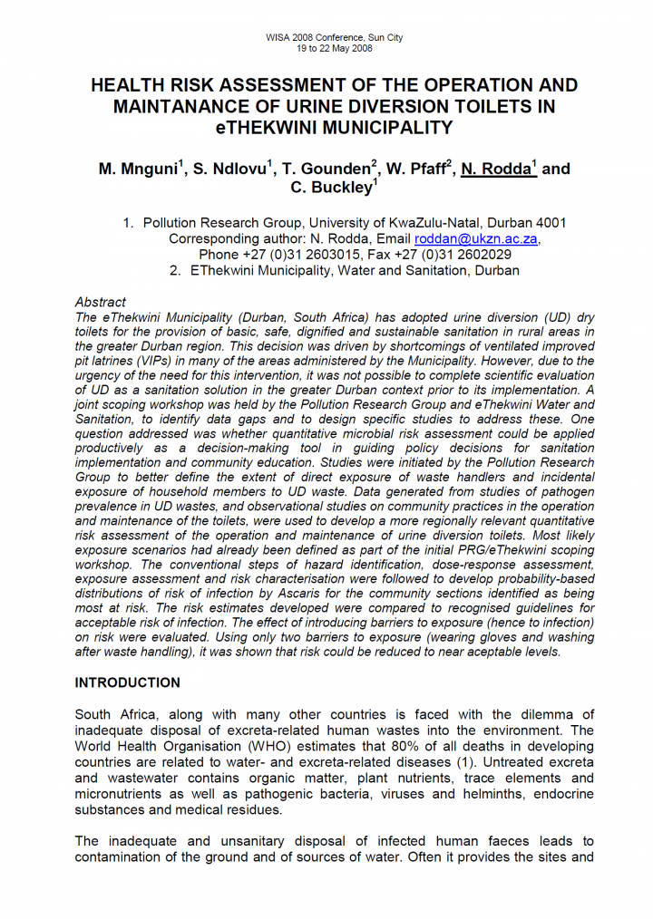From the foreword: Apart from expanding and supporting the ecosan network, this second symposium provided experts from a wide range of disciplines with the opportunity for a professional exchange. The attendance of 350 enthusiastic experts from a wide range of disciplines from 60 countries ensured that the exchange was fruitful and addressed the complexity of the transition to new sanitation concepts. A further goal of the […]