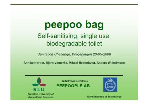 Nordin, A., Vinneras, B., Hedenkvist, M., Wilhelmson, A. (2008) Peepoo bag: Self-sanitising, single use, biodegradable toilet