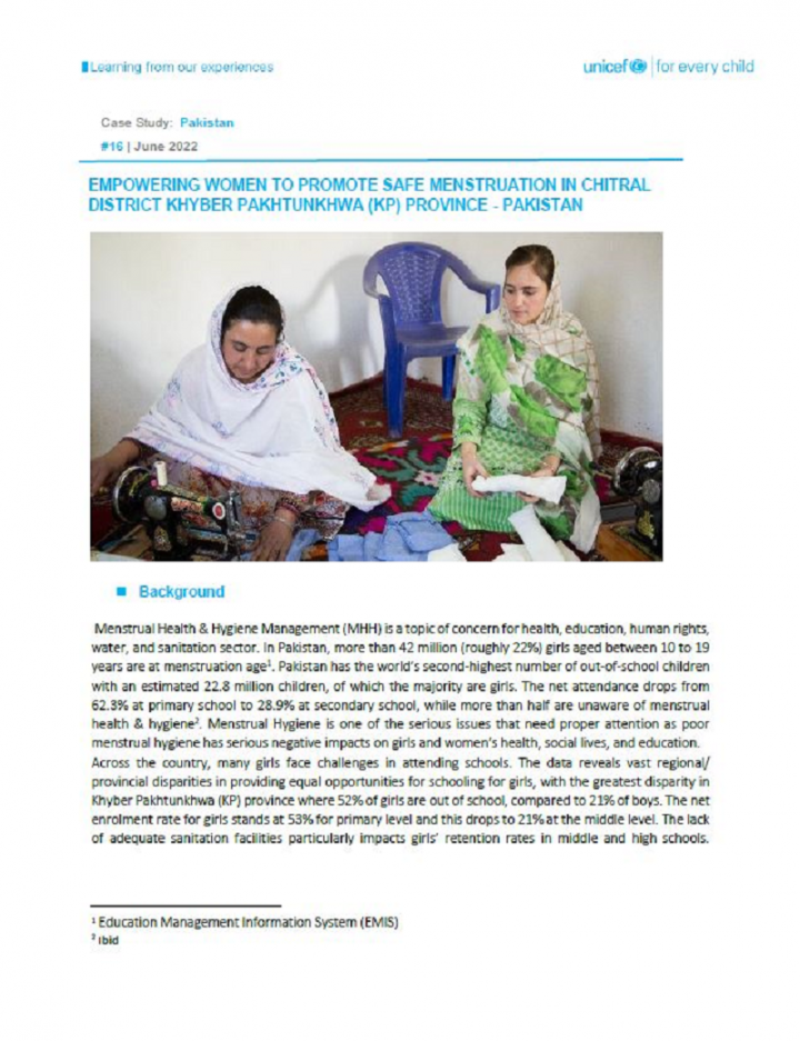 Menstrual Health & Hygiene Management (MHH) is a topic of concern for health, education, human rights, water, and sanitation sector. In Pakistan, more than 42 million (roughly 22%) girls aged between 10 to 19 years are at menstruation age1. Pakistan has the world’s second-highest number of out-of-school children with an estimated 22.8 million children, of which the majority are girls. The net attendance drops from […]