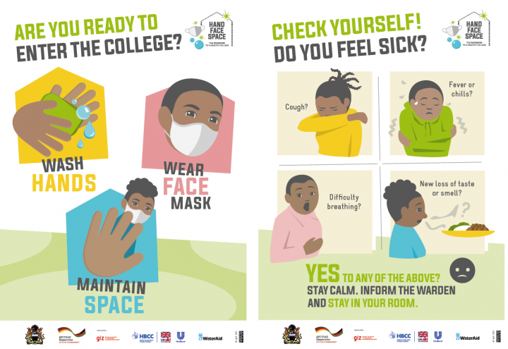 WASH in Schools Posters to manage the spread of COVID-19 in colleges.