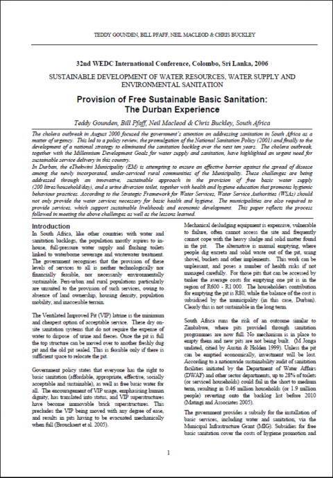 This book is a collection of case studies on sanitation and hygiene initiatives in South East Asia and the Pacific and provides an opportunity for those in the region who work in sanitation to share their experiences — whether they started out as engineers, educators, public health workers, marketers, anthropologists or development generalists. I hope that by doing so, it will help to develop a genuine […]