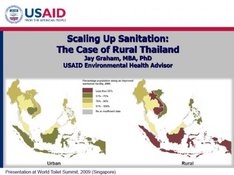 Lessons learnt in Thailand for rural sanitation: Decentralized Health System, “Toilet Doctors” Strong follow-up Community involvement, community seen as partners Villages developed implementation plans High-Level Support Transparent funding Clear directives Sanitation Policies – sanitary toilet ordinance Reduced Hardware Subsidies – subsidies undermining sustained use