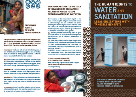 OHCHR (2008) The human rights to water and sanitation - legal obligations with tangible benefits Independant expert on the issue of human rights obligation related to access to safe drinking water and sanitation