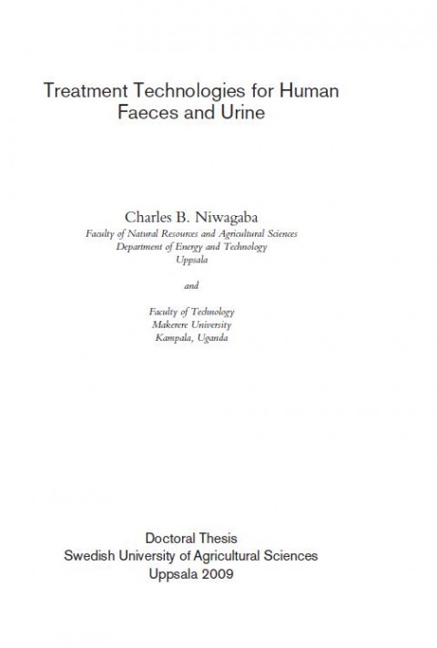 Niwagaba, C. B. (2009) Treatment technologies for human faeces and urine PhD thesis