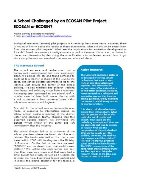 Verweij, M., Nyirishema, R. (2010) A School Challenged by an ECOSAN Pilot Project Ecosan or Ecosin?