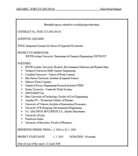 AQUAREC (2006) Integrated Concepts for Reuse of Upgraded Wastewater Detailed report, related to overall project duration