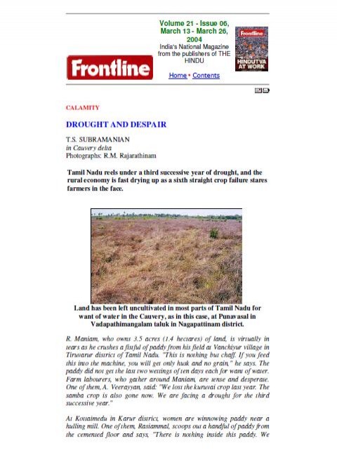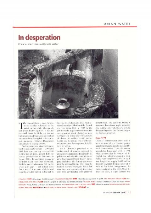 Down to Earth (2004) In desperation Chennai must incessantly seek water