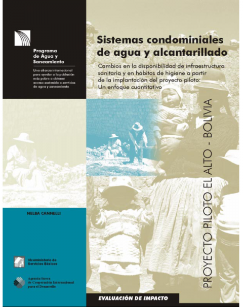 Cannelli, N. (2001) Sistemas condominiales de agua y alcantarillado (in Spanish) Condominium water and sewage systems - Cambios en la disponibilidad de infraestructura sanitaria y en hábitos de higiene a partir de la implantación del proyecto piloto: Un enfoque cuantitativo