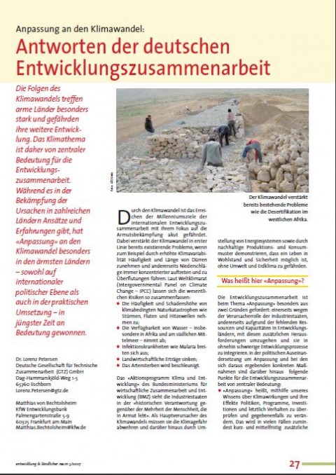 Petersen, L., von Bechtolsheim, M. (2007) Anpassung an den Klimawandel: Antworten der deutschen Entwicklungszusammenarbeit (in German) Adaptation to Climate Change: The German Development Cooperation's response