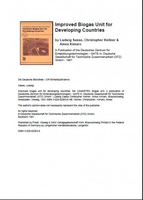 Sasse, L. (1991) Improved Biogas Unit for Developing Countries The CAMARTEC biogas unit