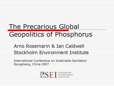 Rosemarin, A.; Caldwell, I. (2007) The Precarious Global Geopolitics of Phosphorus