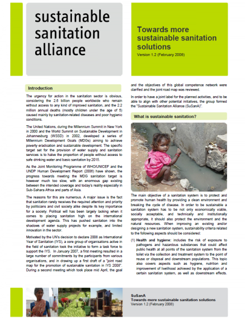 SuSanA (2008) Towards more sustainable sanitation solutions SuSanA Vision Document
