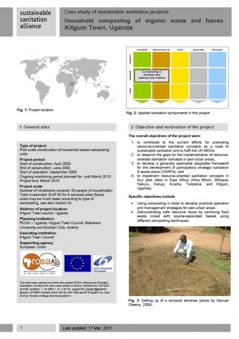 Kinobe, J., Olweny, D., Niwagaba, C. (2010) Household composting of organic waste and faeces, Kitgum Town, Uganda Case study of sustainable sanitation projects
