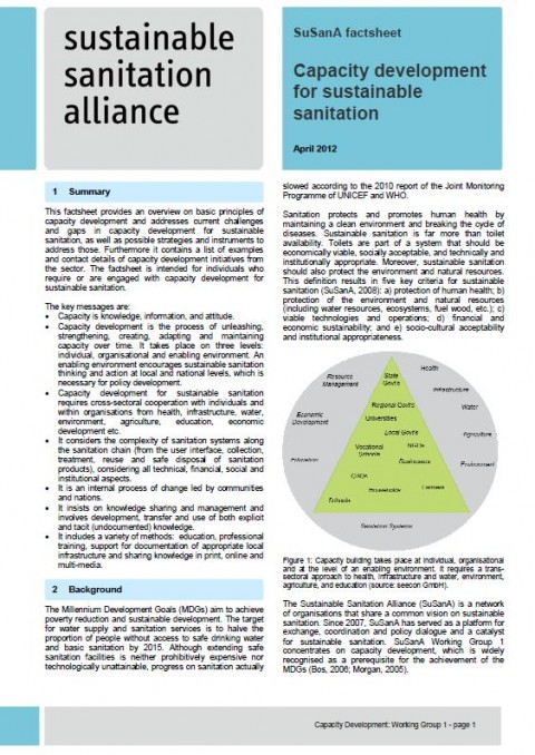 Spuhler, D., McCreary, C., Fogde, M., Jenssen, P. D. (2012) Capacity development for sustainable sanitation Factsheet of Working Group 1