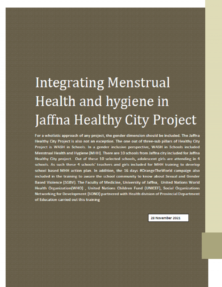 For a wholistic approach of any project, the gender dimension should be included. The Jaffna Healthy City Project is also not an exception. The one out of three-sub pillars of Healthy City Project is WASH in Schools. In a gender inclusive perspective, WASH in Schools included Menstrual Health and Hygiene (MHH). There are 10 schools from Jaffna city included for Jaffna Healthy City project. Out […]
