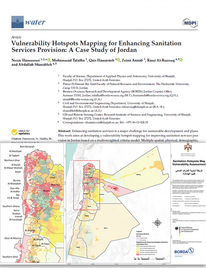 Enhancing sanitation services is a major challenge for sustainable development and plans. This work aims at developing a vulnerability hotspot mapping for improving sanitation services provision in Jordan based on a multi-weighted criteria model. Multiple spatial, physical, demographic, social, economic, and sanitation data were collected and compiled using GIS. We also considered experts’ and stakeholders’ opinions to determine the necessary indicators needed to develop Sanitation Hotspot Index (SHI). We used […]