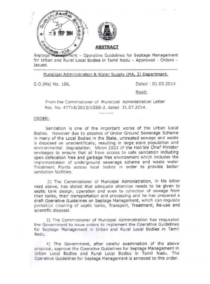 It is known that eradicating open defecation is only half the battle. For improving sanitation, faecal sludge and wastewater also needs to be safely managed. It is in this context that Government of India, Ministry of Housing and Urban Affairs (MoHUA) issued a National Faecal Sludge and Septage Management (FSSM) Policy3 . It recommends regular desludging of septic tanks through a systematic extraction and collection […]