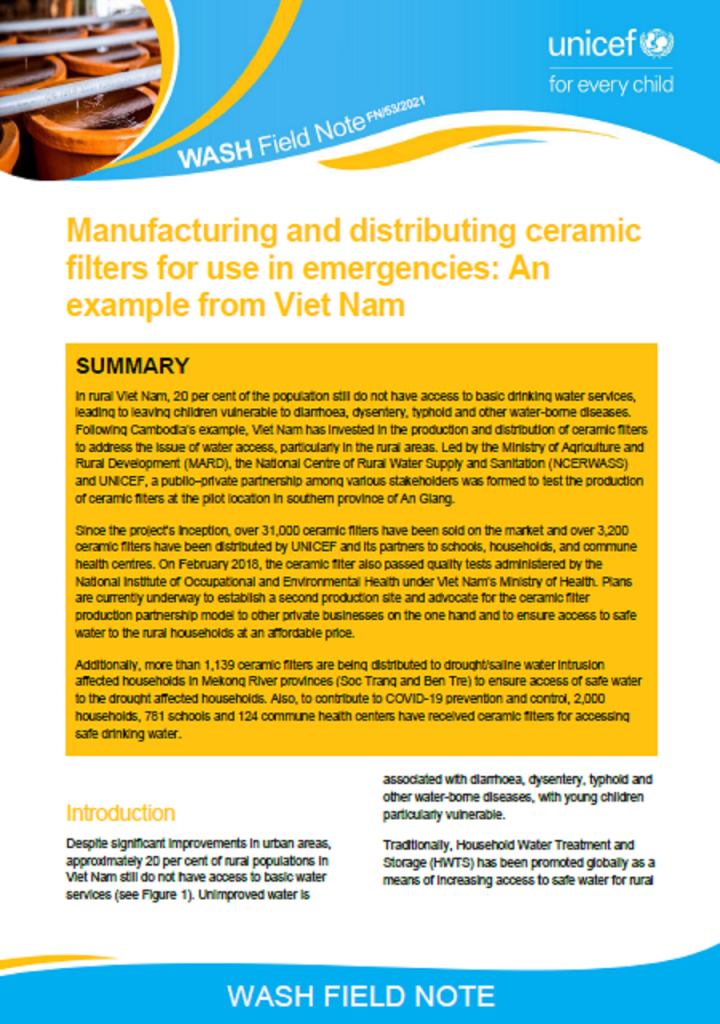 In rural Viet Nam, 20 per cent of the population still do not have access to basic drinking water services, leading to leaving children vulnerable to diarrhoea, dysentery, typhoid and other water-borne diseases. Following Cambodia’s example, Viet Nam has invested in the production and distribution of ceramic filters to address the issue of water access, particularly in the rural areas. Led by the Ministry of […]