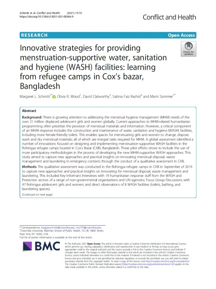 There is growing attention to addressing the menstrual hygiene management (MHM) needs of the over 21 million displaced adolescent girls and women globally. Current approaches to MHM-related humanitarian programming often prioritize the provision of menstrual materials and information. However, a critical component of an MHM response includes the construction and maintenance of water, sanitation and hygiene (WASH) facilities, including more female-friendly toilets. This enables spaces […]