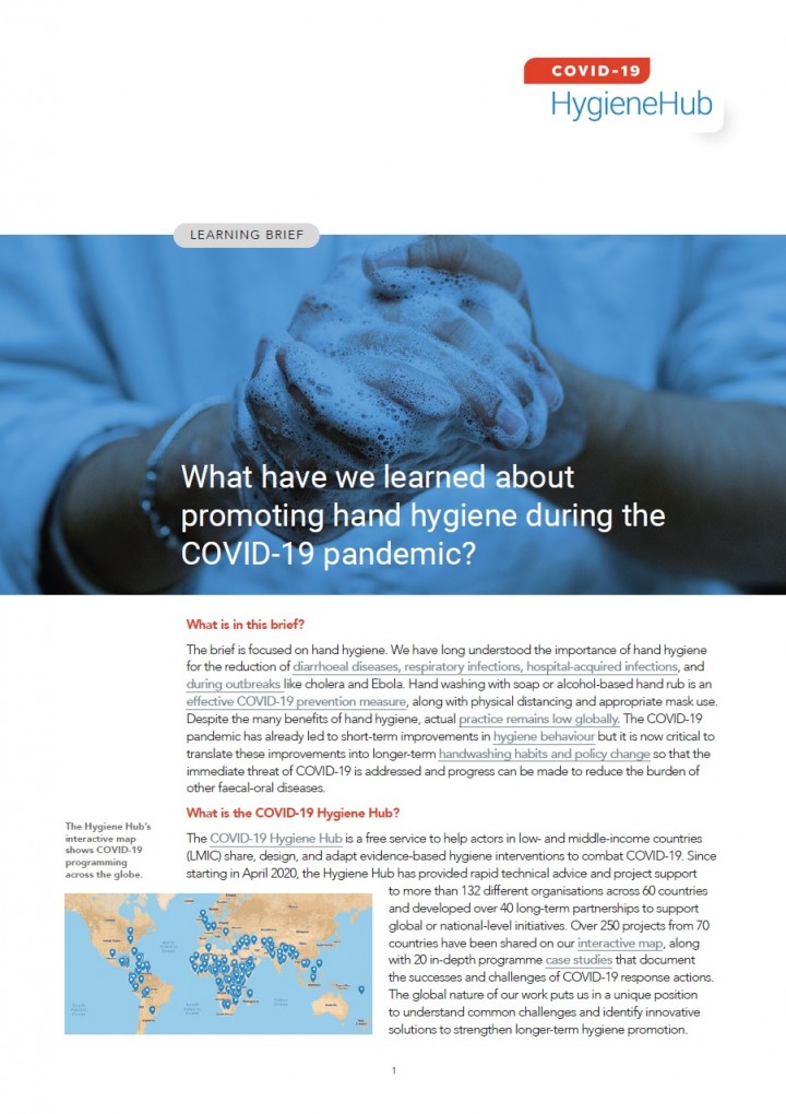 The brief is focused on hand hygiene. We have long understood the importance of hand hygiene for the reduction of diarrhoeal diseases, respiratory infections, hospital-acquired infections and during outbreaks like cholera and Ebola. Hand washing with soap or alcohol-based hand rub is an effective COVID-19 prevention measure along with physical distancing and appropriate mask use. Despite the many benefits of hand hygiene, actual practice remains […]