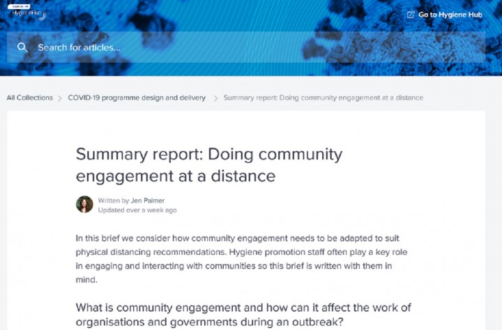 In this brief we consider how community engagement needs to be adapted to suit physical distancing recommendations. Hygiene promotion staff often play a key role in engaging and interacting with communities so this brief is written with them in mind.