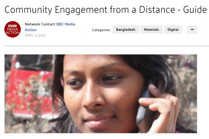 This short guide to community engagement at a distance is designed to assist development and humanitarian agencies to think through how risk communication and community engagement (RCCE) activities related to COVID-19 can be carried out without face-to-face interaction with communities. It is intended for communities in Bangladesh and was produced by BBC Media Action on behalf of Shongjog multi-stakeholder platform (MSP), the national platform for […]