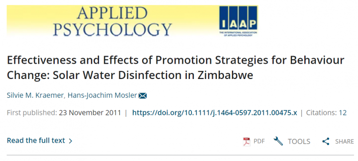 Solar water disinfection (SODIS) is a sustainable method of water treatment. Despite the simplicity and many advantages of SODIS, past behaviour change campaigns have seen limited success. This study aims to compare intervention strategies in their efficiency in changing behaviour and to analyse which behavioural factors are differentially affected. The following factors were analysed in this study: intention, subjective norm, behavioural control, beliefs, habits, frequency […]