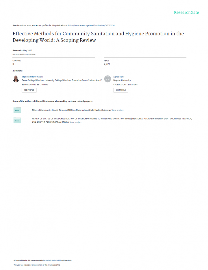 World Health Organization data on the burden of disease shows that approximately 3.1% of deaths (1.7 million) and 3.7% (54.2 million) of disability-adjusted-life-years (DALYs) worldwide are attributable to unsafe water, sanitation and hygiene. In Africa and developing countries in South East Asia 4-8% of all disease burdens are attributable to poor hygiene and sanitation. Over 99.8% of all deaths in developing world are attributable to […]