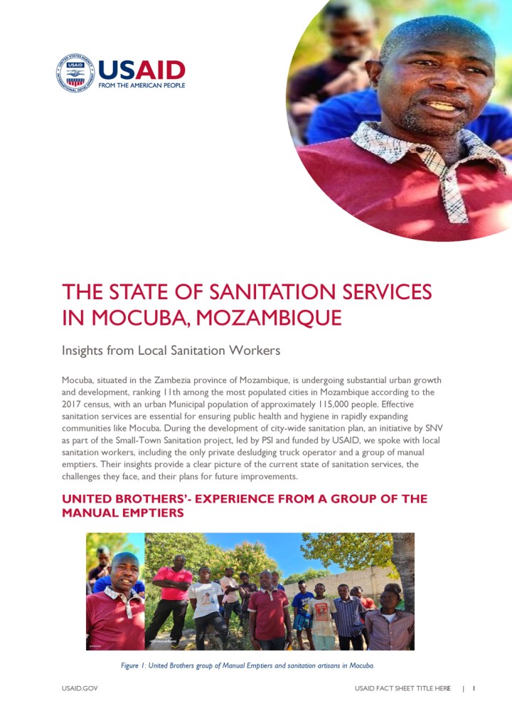 Mocuba, situated in the Zambezia province of Mozambique, is undergoing substantial urban growth and development, ranking 11th among the most populated cities in Mozambique according to the 2017 census, with an urban Municipal population of approximately 115,000 people. Effective sanitation services are essential for ensuring public health and hygiene in rapidly expanding communities like Mocuba. During the development of city-wide sanitation plan, an initiative by […]