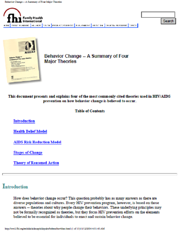 This document presents and explains four of the most commonly cited theories used in HIV/AIDS prevention on how behavior change is believed to occur.
