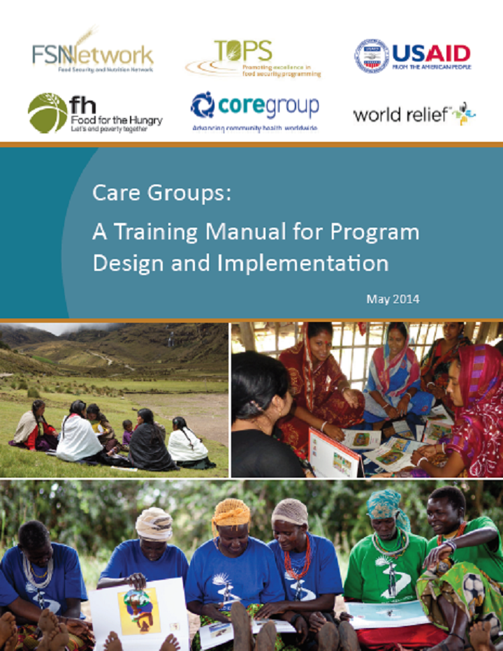 This manual was developed as a training resource for designing, training, implementing and monitoring Care Group (CG) programs. It seeks to help CG approach implementers to clearly understand the structure of the CG approach, how to establish CGs, how to monitor the work of CGs and assess their impact, and how to maintain the quality of the approach through supportive supervision and quality control.