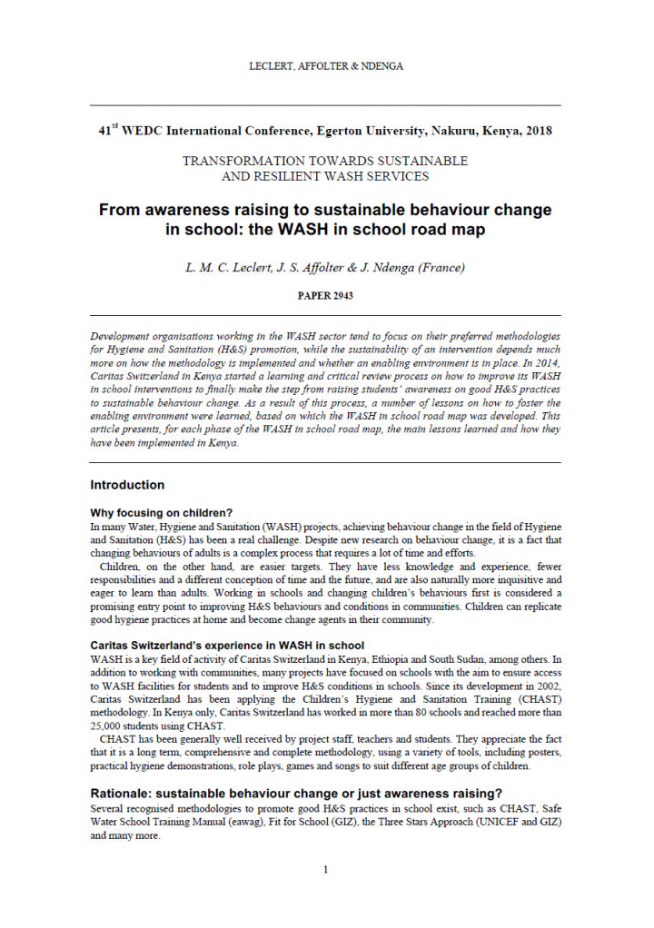 Development organisations working in the WASH sector tend to focus on their preferred methodologies for Hygiene and Sanitation (H&S) promotion, while the sustainability of an intervention depends much more on how the methodology is implemented and whether an enabling environment is in place. In 2014, Caritas Switzerland in Kenya started a learning and critical review process on how to improve its WASH in school interventions […]