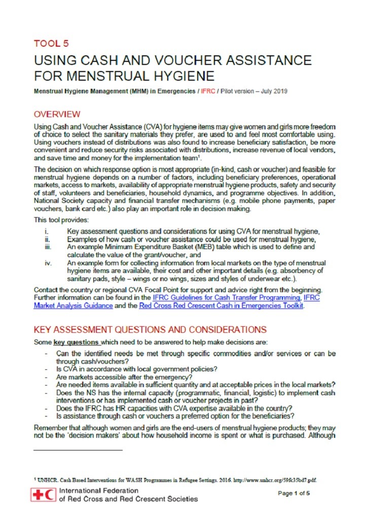 Using Cash and Voucher Assistance (CVA) for hygiene items may give women and girls more freedom of choice to select the sanitary materials they prefer, are used to and feel most comfortable using. Using vouchers instead of distributions was also found to increase beneficiary satisfaction, be more convenient and reduce security risks associated with distributions, increase revenue of local vendors, and save time and money […]